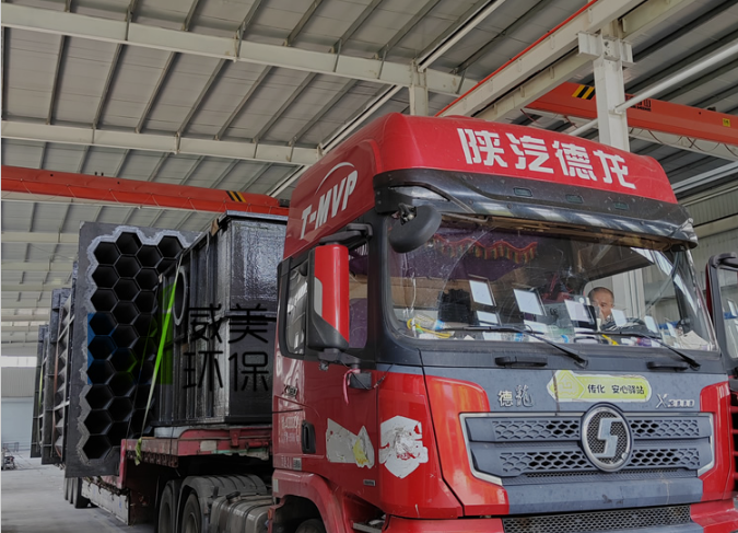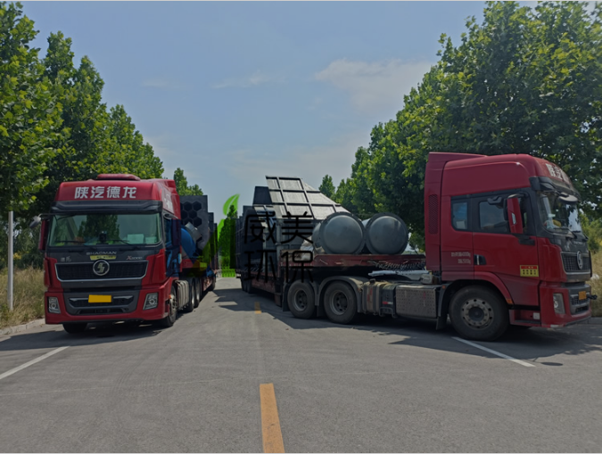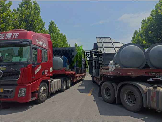 氰尿酸尾氣治理濕電除霧器裝車(chē)完畢,準(zhǔn)備出發(fā)