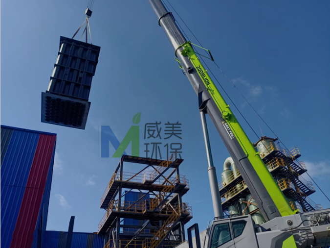 小蘇打尾氣治理濕電除霧器安裝完畢 開(kāi)機(jī)運(yùn)行