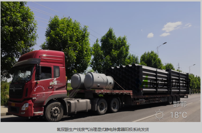 下面這臺濕式靜電除霧器客戶的工廠位于山東鄄城,25萬氣量,主要產(chǎn)品氰尿酸在全國乃至國際市場占據(jù)了重要份額,現(xiàn)階段濕式靜電除霧器已經(jīng)安裝調(diào)試完成,正常投入生產(chǎn),實現(xiàn)環(huán)保達(dá)標(biāo)。