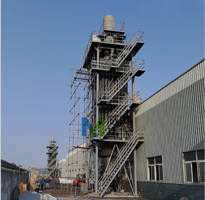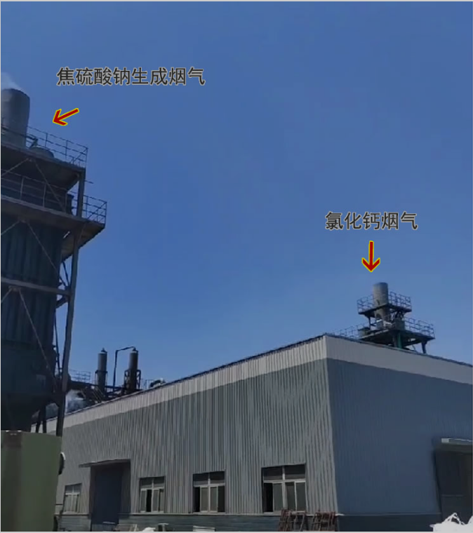 同廠區(qū)內(nèi)兩臺濕電除霧器 右側(cè)為前段時間調(diào)試的氯化鈣尾氣治理除霧設(shè)備