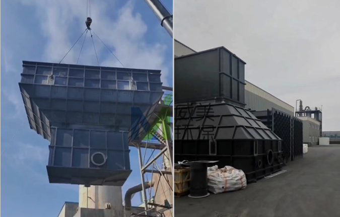 河南危廢項目濕電除霧器安裝完畢,該除霧器用于危廢綜合處置中心項目,處理量為100t/d