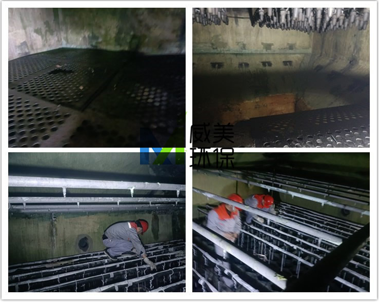 威美環(huán)保工作人員到達湖北后立即對黃磷渣氣濕電除霧器進行內部檢查