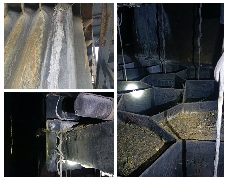 濕電除霧器陽極管、陰極線、小梁腐蝕嚴(yán)重