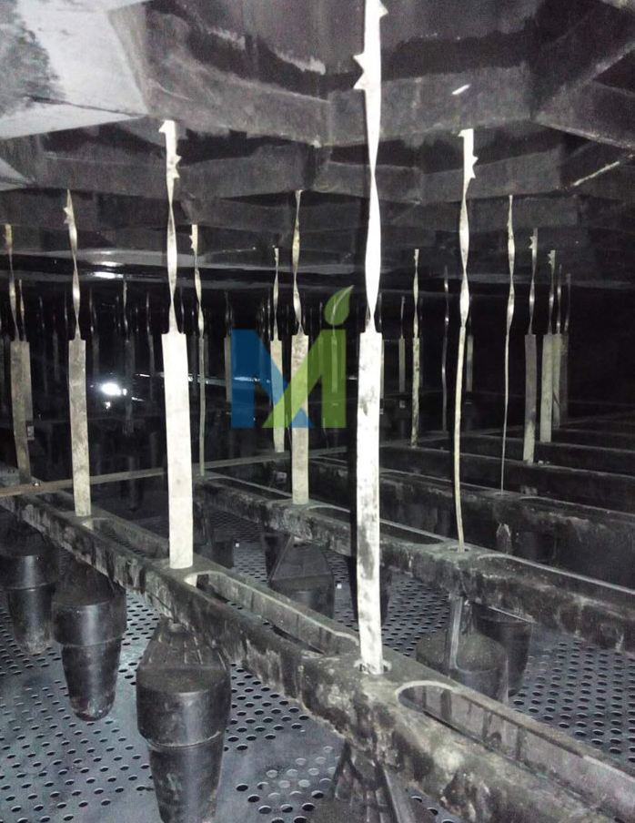 湖北氰尿酸尾氣二氯異氰尿酸、三氯異氰尿酸煙氣治理現(xiàn)場(chǎng)濕電除霧器陽極系統(tǒng)吊裝現(xiàn)場(chǎng)