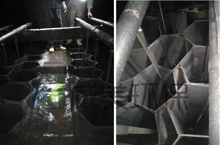 3.濕電除霧器氣體分布板有無損壞、脫落。有時(shí)煙氣流速較低部位氣流分布板有可能產(chǎn)生積灰、堵塞,需要檢查并進(jìn)行人工清掃。